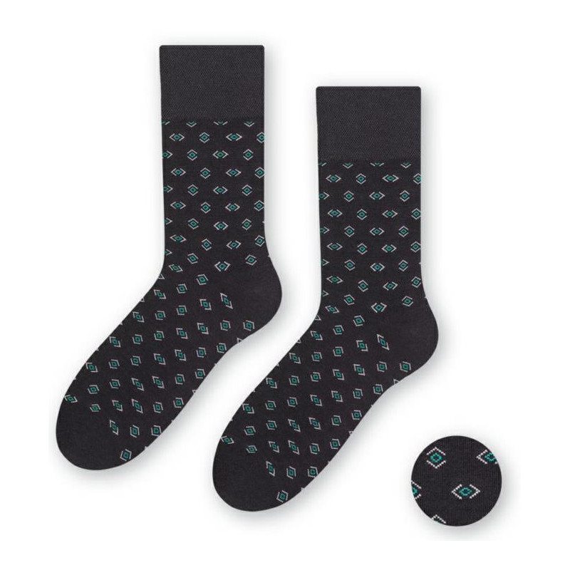 Spoločenské trendy ponožky pre pánov a veľkých chlapcov, majú hustý drobný vzor, vyšší piketový patent a retiazkovú špicu, dobre sa nosia vďaka elastanu.