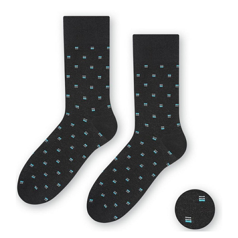 Spoločenské trendy ponožky pre pánov a veľkých chlapcov, majú drobný vzor po celej ponožke, vyšší netlačiaci patent a retiazkovú špicu, dobre sa nosia vďaka elastanu, vhodné na každodenné nosenie.