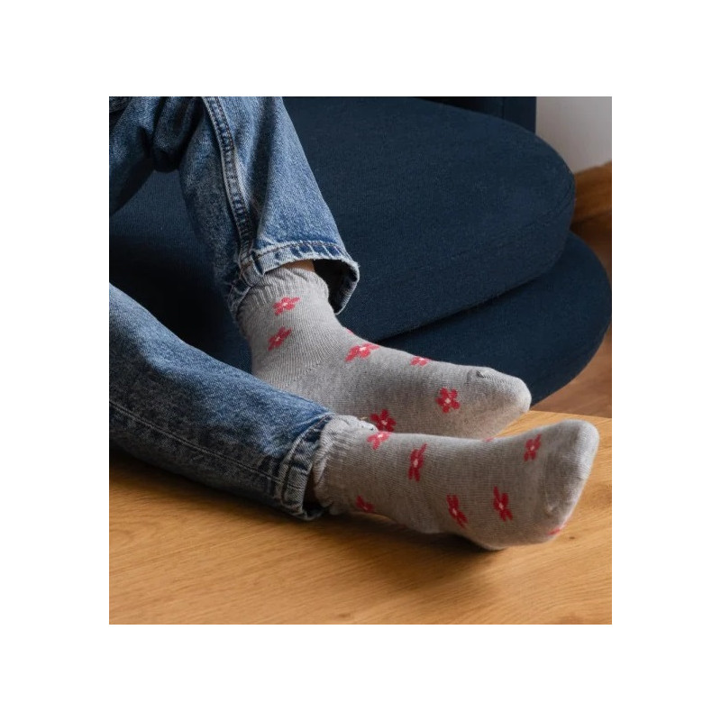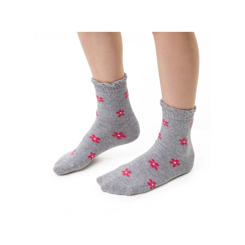Veselé vzorované bavlnené ponožky pre dievčatá, majú pohodlný patent a retiazkovú špicu. Vzor tvoria ružové kvietky.